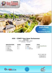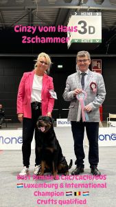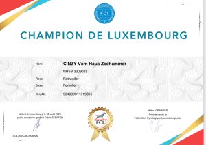 π De eerste dag werd ze 1e Uitmuntend in de kampioensklasse π₯πΆ en ook reserve beste teef en daarmee behaalde ze de Luxemburgse titel!